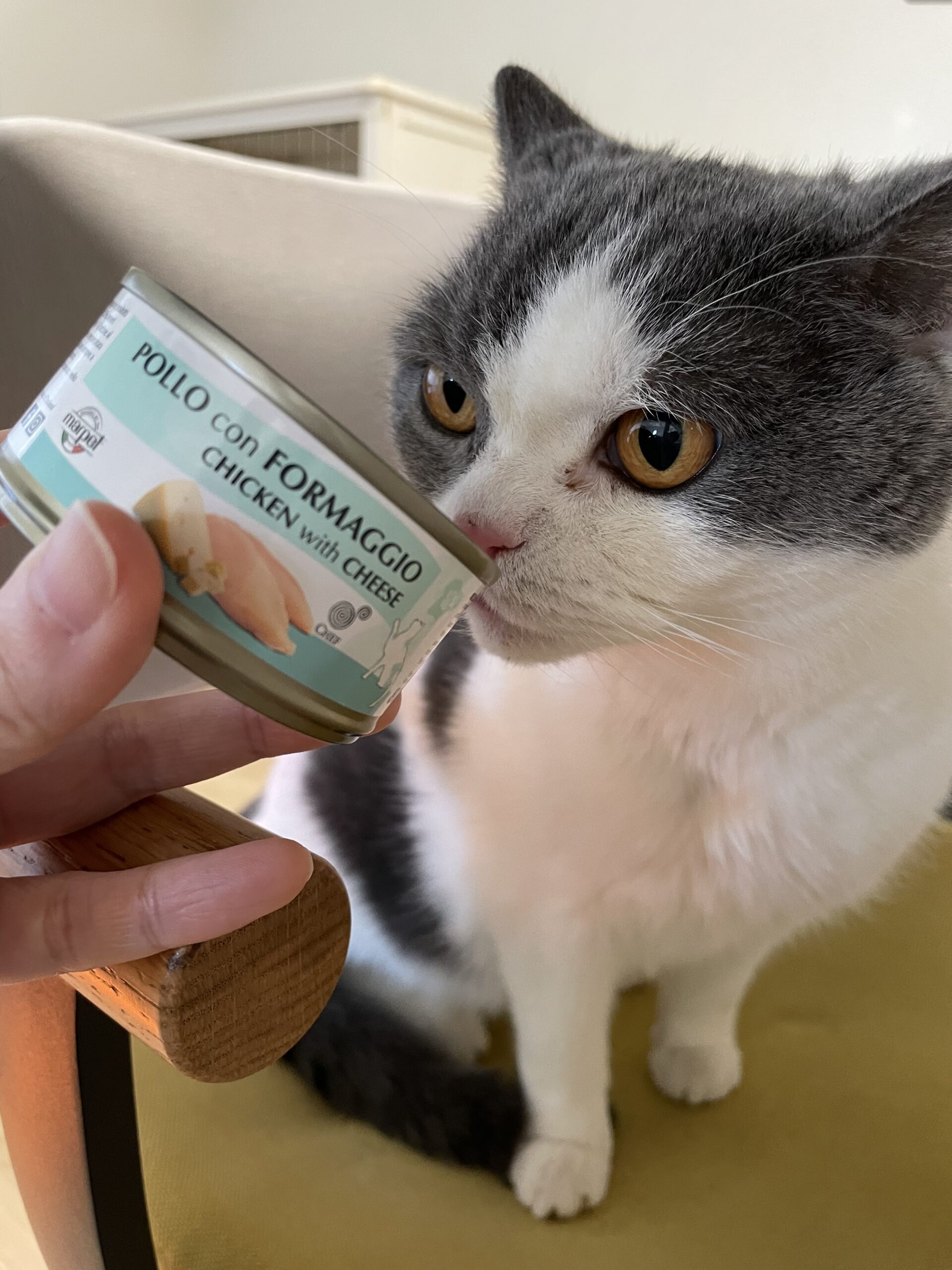 チーズを使った料理をワタシが食べていてもすんすん嗅ぎに来ますし、シェフもチーズ入りタイプの缶を開けるとすんすんすんすん寄ってきます。